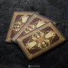 The decks feature four of Shakespeare's best known works: Hamlet, Romeo & Juliet, Macbeth and King Lear. The Roses deck interprets these characters with an item of significance while the Thorns deck depicts their method of death (it's a lot of deaths.)