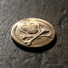 This Antique Gold Coin can be used as a dealer button, card guard, display piece, or decision maker. The front side features the Muertos Sugar Skull and the back features the Muertos Insignia.